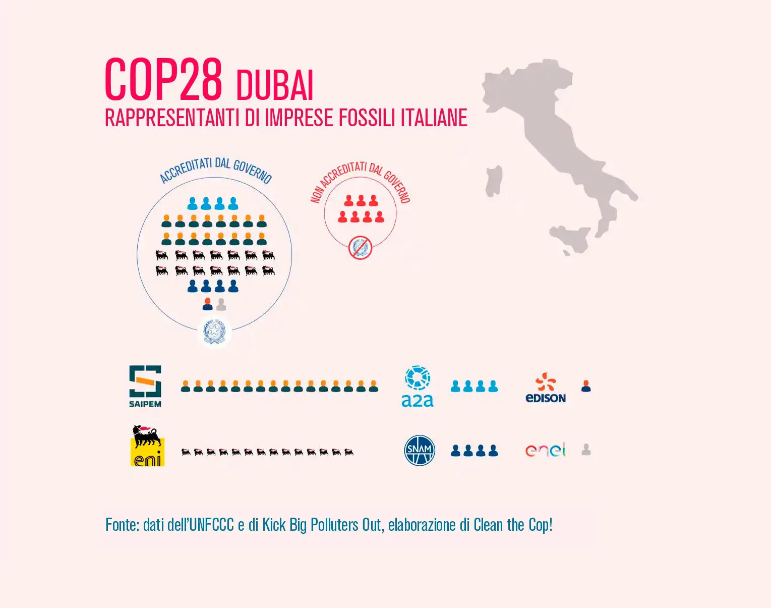 Alla Cop28 di Dubai il governo italiano aveva accreditato 40 lobbisti italiani su un totale di 47.