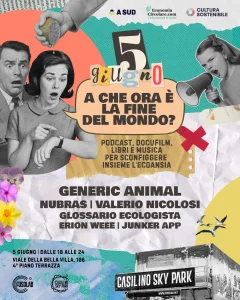 Il 5 giugno 2025, presso Casilino Sky Park nella città di Roma, si terrà “A che ora è la fine del mondo?”: la prima rassegna culturale di A Sud che unisce resistenza climatica, arte e comunità per ripensare il futuro.